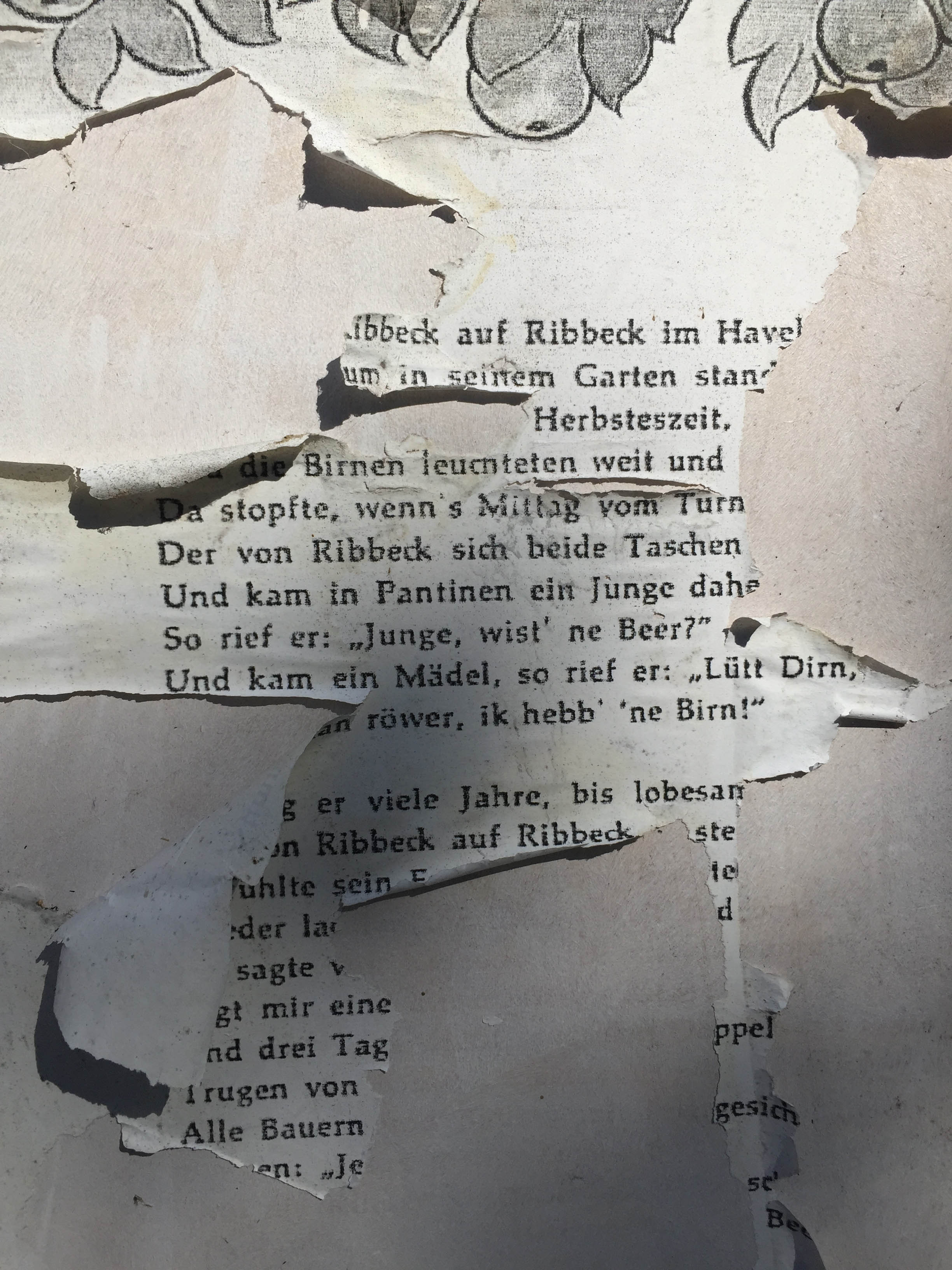 Fontanes Name, touristisch wichtig für das Havelland, konnte den Niedergang der nach ihm benannten Gaststätte in Ribbeck, dem Dorf des berühmten Birnbaum-Gedichts, nicht verhindern. Das Bild der heruntergekommenen Fassade ist als Potemkinsche Atrappe hineingesetzt in die ländliche Kulisse der Biennale im havelländischen Neuwerder. Sie spielt auf Erwartungen und Enttäuschungen an, die mit einer Landpartie auf den Spuren Fontanes verbunden sein mögen.