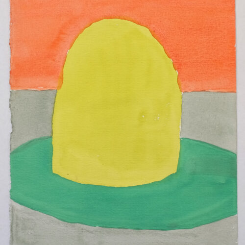 Two Tones is a series of watercolors. The symbolic motifs are sometimes figurative, sometimes abstract. Specific combinations reduced to a maximum of 4 colors are used for figure and ground. A characteristic feature is the torn edge, which gives the sheets a fragmentary character and identifies them as parts of a larger whole. Grouped together, they always produce a different color tone.