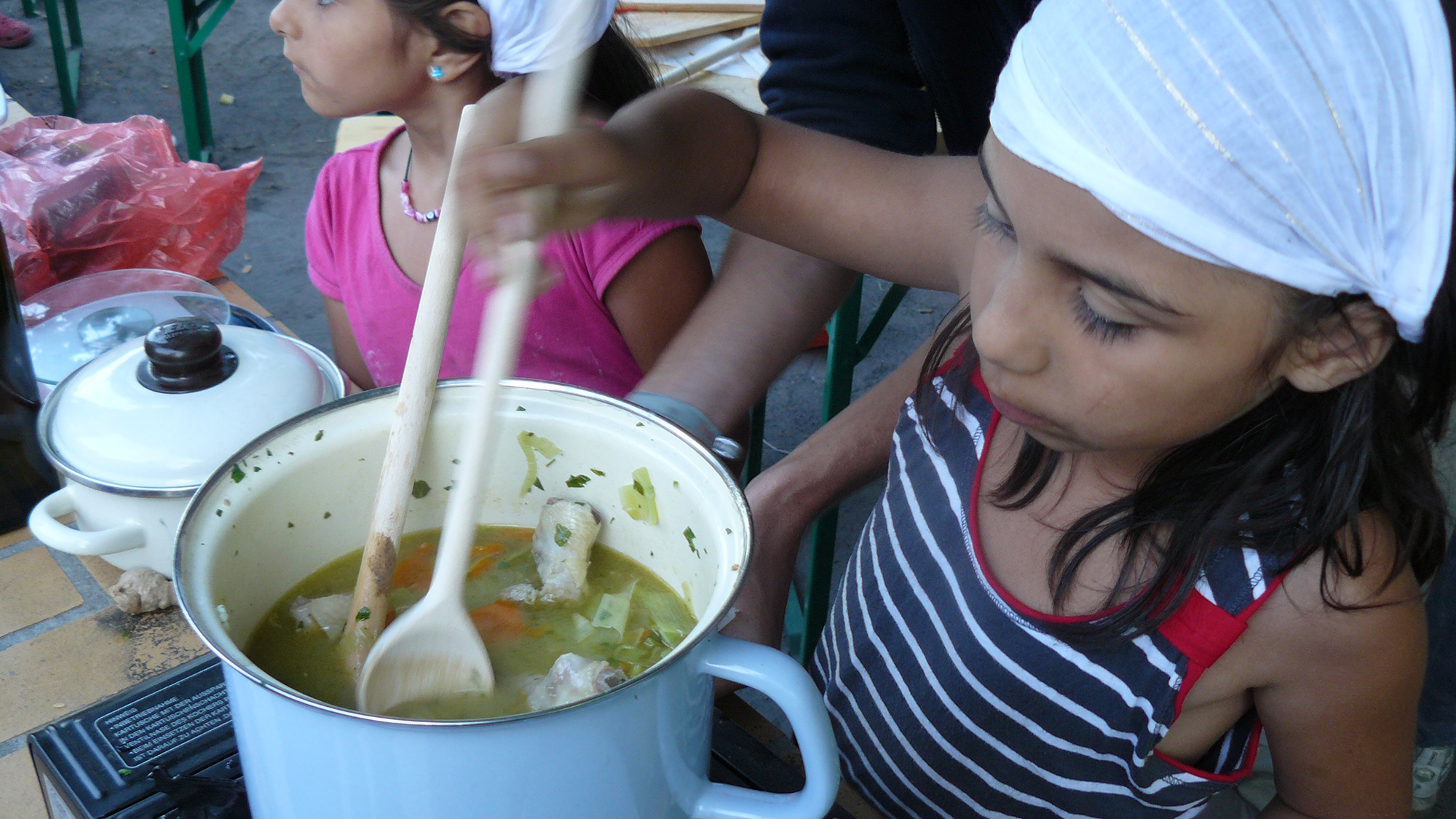 Die Idee, im Park Gemüse anzubauen, um daraus später einen Eintopf zu kochen und diesen zusammen zu essen, knüpft an die dörflichen Strukturen an, die sich allmählich um die Grünanlage gebildet haben, wo jeder jeden kennt, oder wenigstens dessen Schwester oder Schwager …